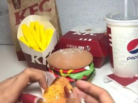 牛人创意假吃,今日份的香辣鸡腿堡套餐,恶